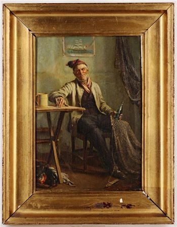 Frants Henningsen "Ritratto di pescatore" 1882 olio su tela (cm 34x23) Firmato e