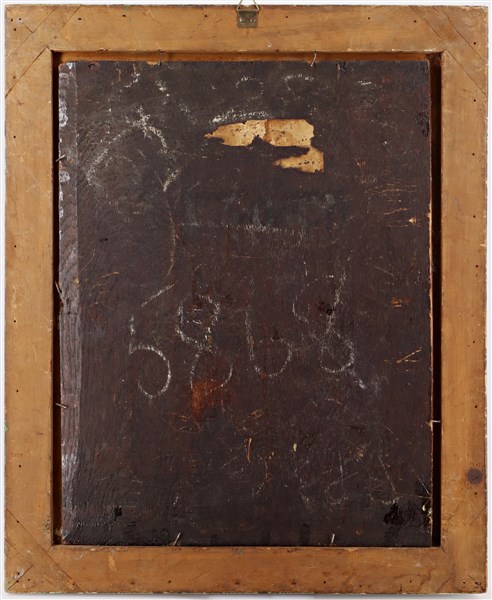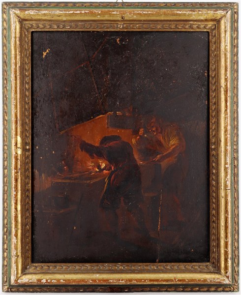 Ignoto "Interno di fucina con figure" olio su tavola (cm 36,5x28) in cornice (