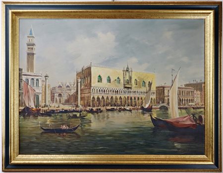 M. Coloman "Il Bacino di San Marco a Venezia" olio su tela (cm 54x74) Firmato i
