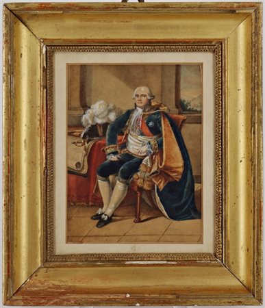 Ignoto, secolo XIX. Ritratto del Generale Raphael de Casablanca, acquerello su carta (cm 16x12) in cornice