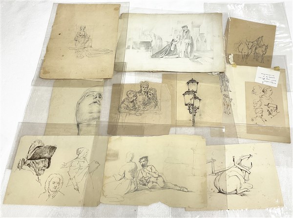 Cartella contenente numerosi disegni del secolo XIX di autori e misure differenti (difetti)