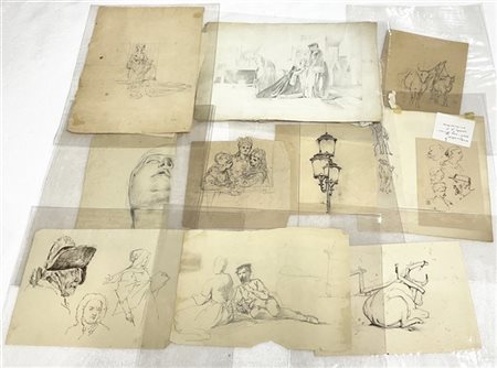 Cartella contenente numerosi disegni del secolo XIX di autori e misure differen
