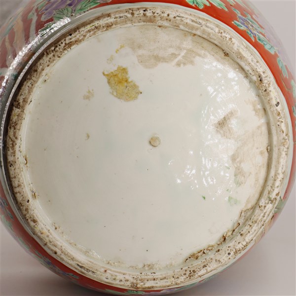 Vaso in porcellana policroma con collo a tromba polilobato riccamente decorato