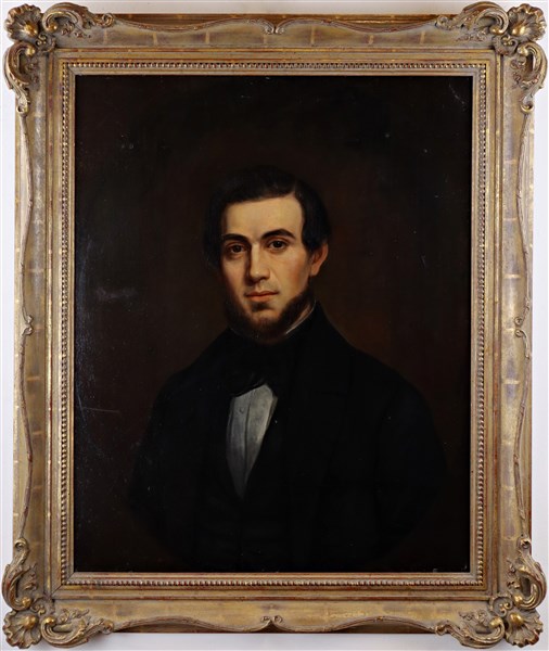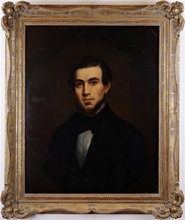 Ignoto della seconda metà del XIX "Ritratto di gentiluomo" olio su tela applicata a masonite (cm 77x61) in cornice (difetti)
