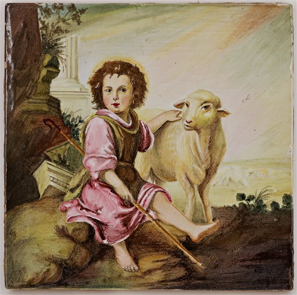 Manifattura Fiumi, Faenza ''Gesù Bambino con agnello'', piastrella in ceramica