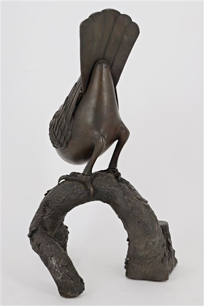 Scultura in bronzo raffigurante un volatile su ramo. Giappone, periodo Meiji (h
