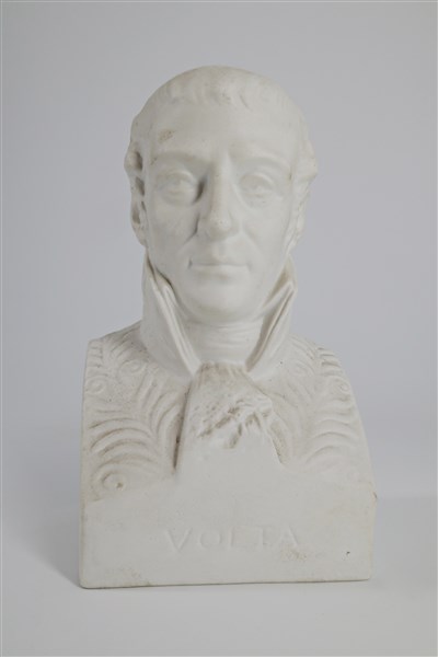 Manifattura Ginori. Busto in biscuit raffigurante Alessandro Volta, marca incus