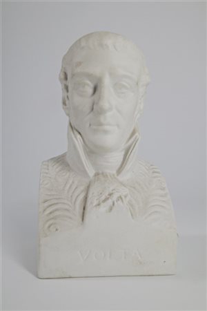 Manifattura Ginori. Busto in biscuit raffigurante Alessandro Volta, marca incussa sul fondo (h cm 15,5) (lievi difetti)