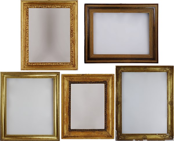Lotto composto da cinque cornici di diversa epoca e decoro, misure differenti (