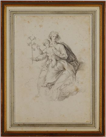Artista italiano "Madonna con Bambino" matita su carta (mm 320x510) in cornice