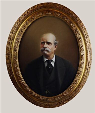 Giacinto Trussandi "Ritratto di gentiluomo" pastelli colorati su carta ovale (c