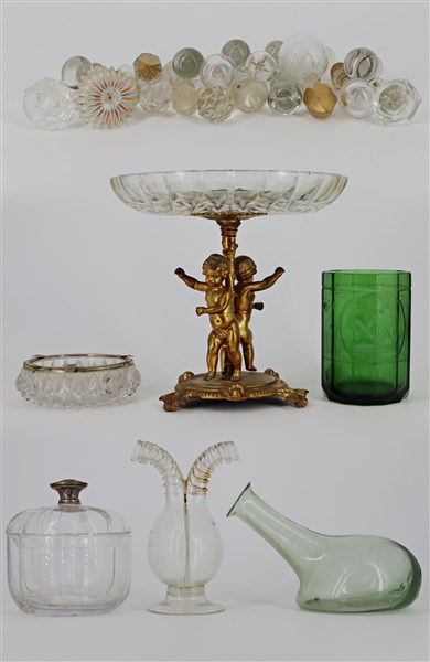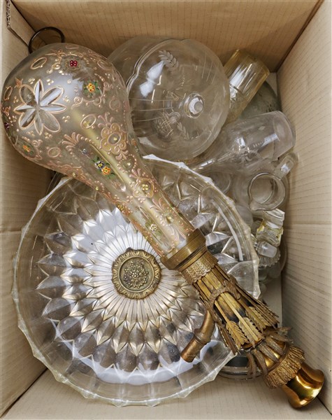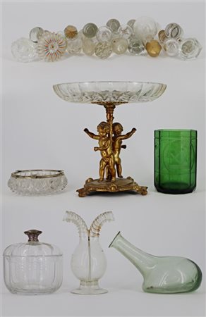 Cartone contenente numerosi oggetti in vetro di fatture ed epoche differenti (d