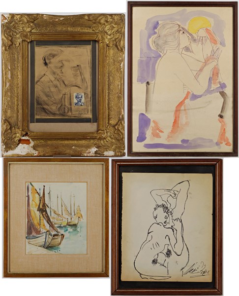Cartone contenente numersi disegni a tecnica mista di soggetto, autore e misure diverse (misura max cm 42x33) alcuni firmati