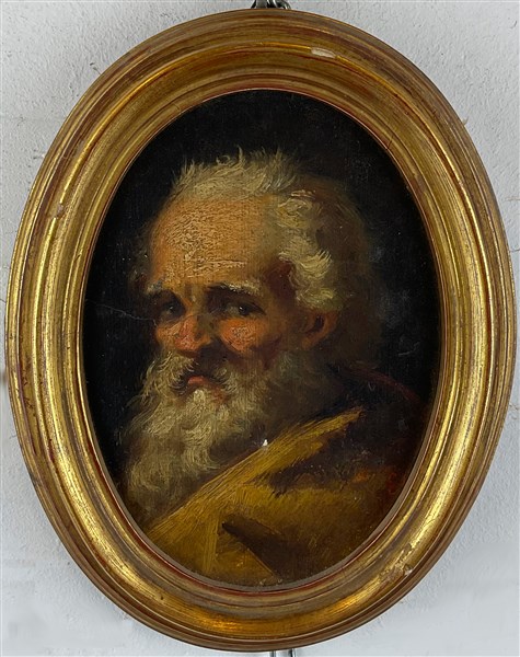 Scuola del secolo XVIII "Ritratto maschile" olio su carta applicata su tavolet