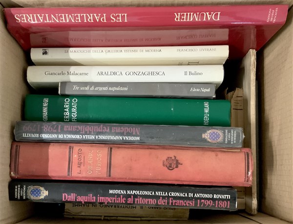 [LIBRI ANTICHI] - Quattro cartoni di libri antichi e moderni, fra cui almanacch