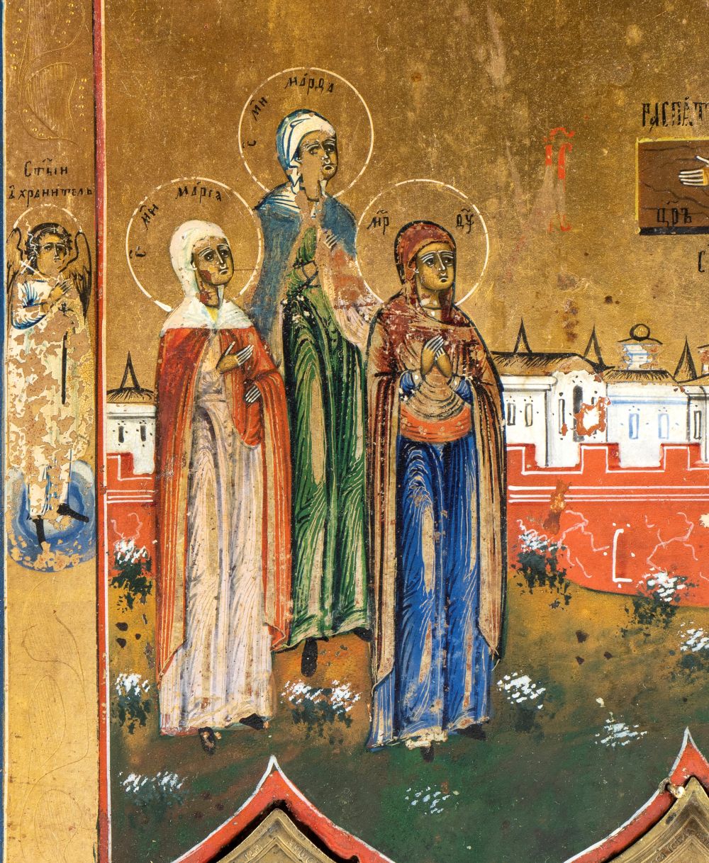 Icona russa con narrazioni religiose e icona da viaggio XIX secolo