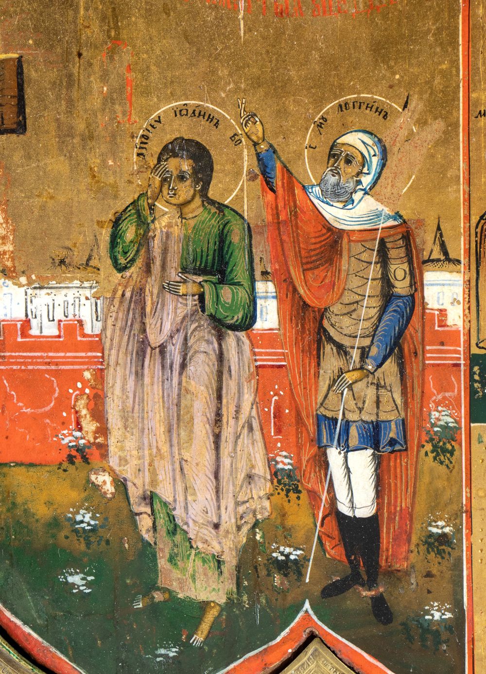 Icona russa con narrazioni religiose e icona da viaggio XIX secolo Altezza x larghezza x profondità: 55 x 46 x 3,7 cm.