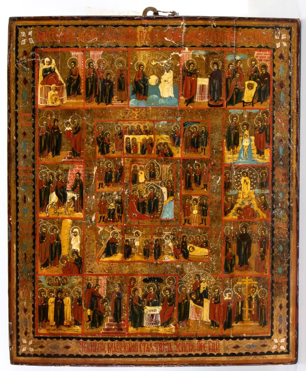 Icona russa con le Sedici Grandi Feste XIX secolo Altezza x larghezza x profondità: 53 x 46 x 3 cm.