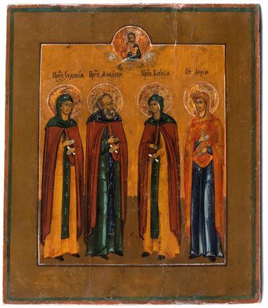 Icona russa con Santi XIX secolo Altezza x larghezza x profondità: 31 x 26 x 2 cm.