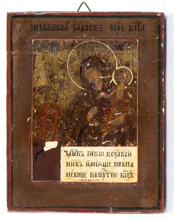Icona russa raffigurante la Madonna Vladimirskaja Inizio XX secolo Altezza x larghezza x profondità: 16 x 12,3 x 1,6 cm.