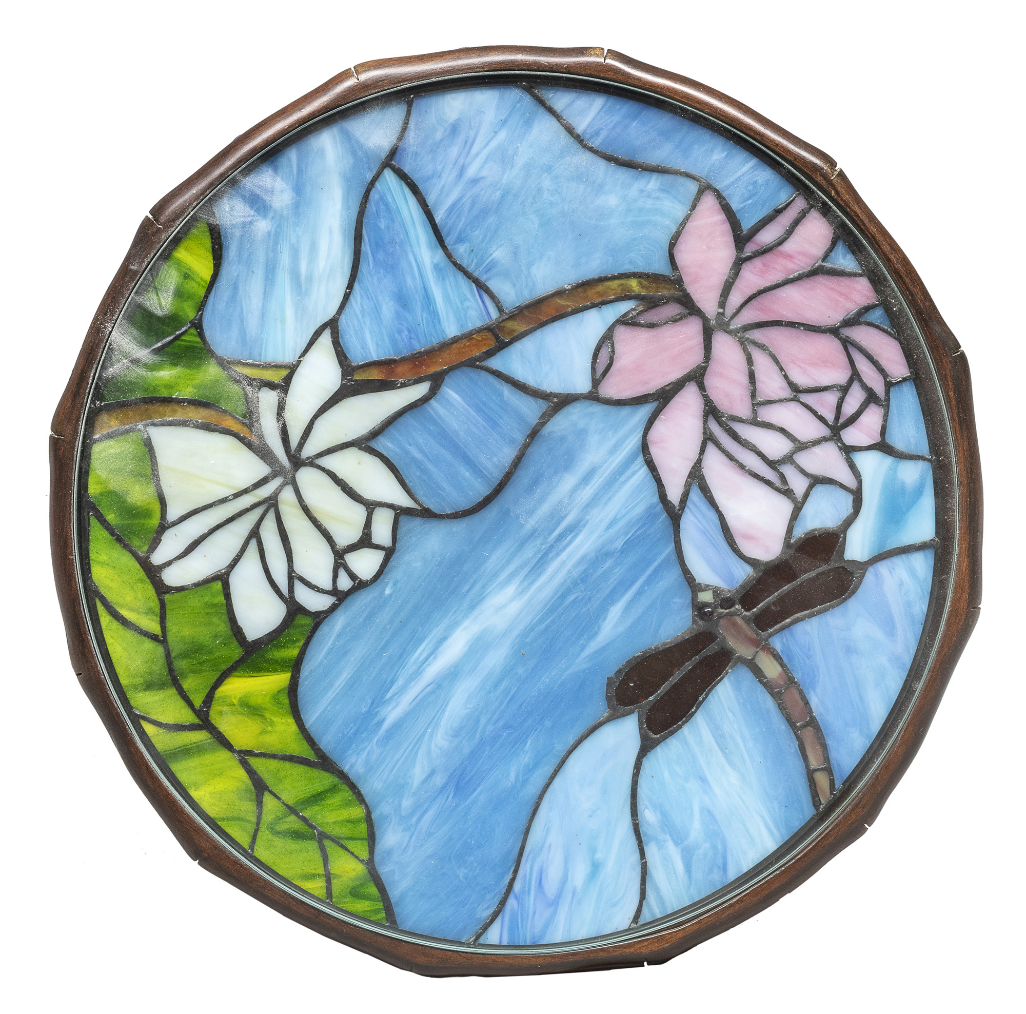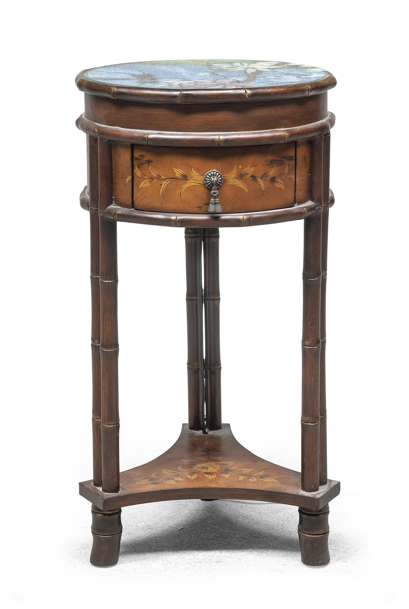 COMODINO CIRCOLARE IN MOGANO, STILE TIFFANY