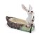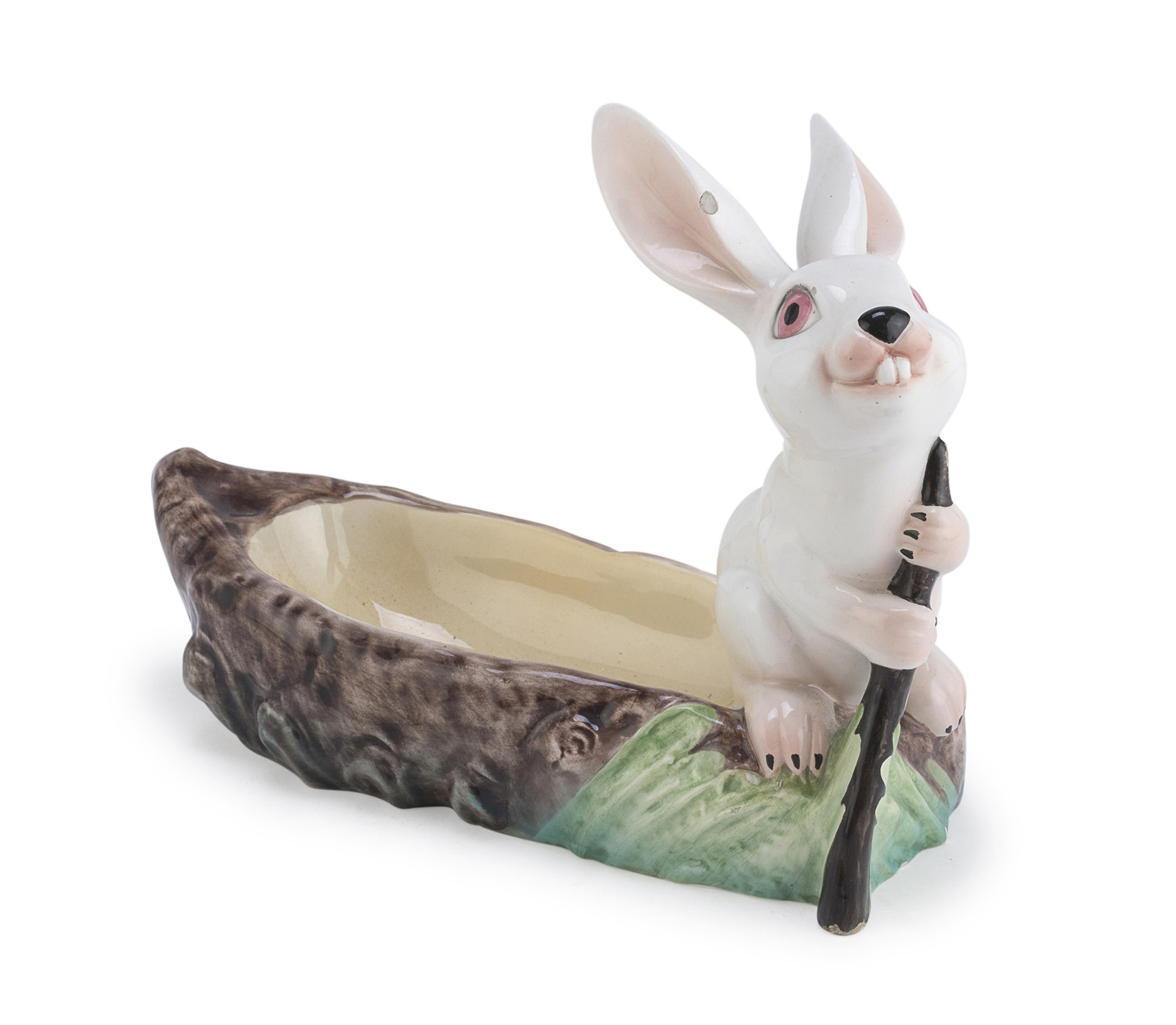 in policromia, modellata a figura di barchetta con coniglio rematore.