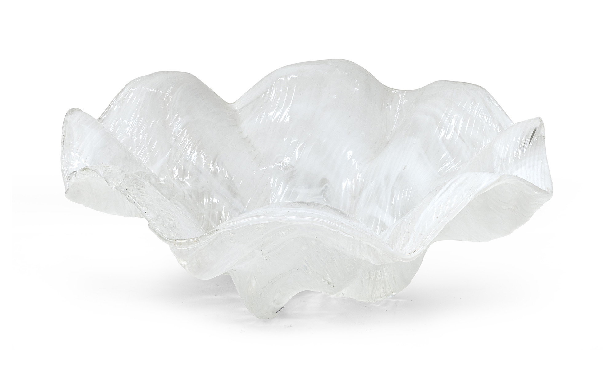 in pasta vitrea a fondo trasparente e lattimo con superficie a rilievi.