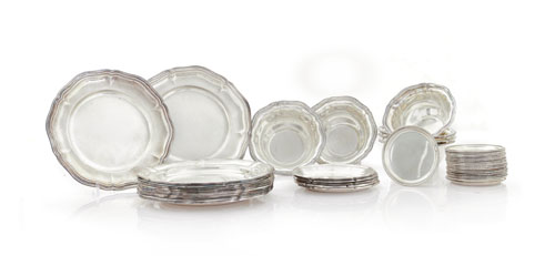 ARGENTI RECENTI SEI CIOTOLE IN ARGENTO, MILANO, PRADELLA; DODICI PIATTINI,...
