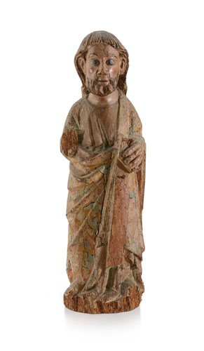 SCULTORE DEL XVI SECOLO Figura di santo Legno dipinto e dorato, alt. cm 64;...