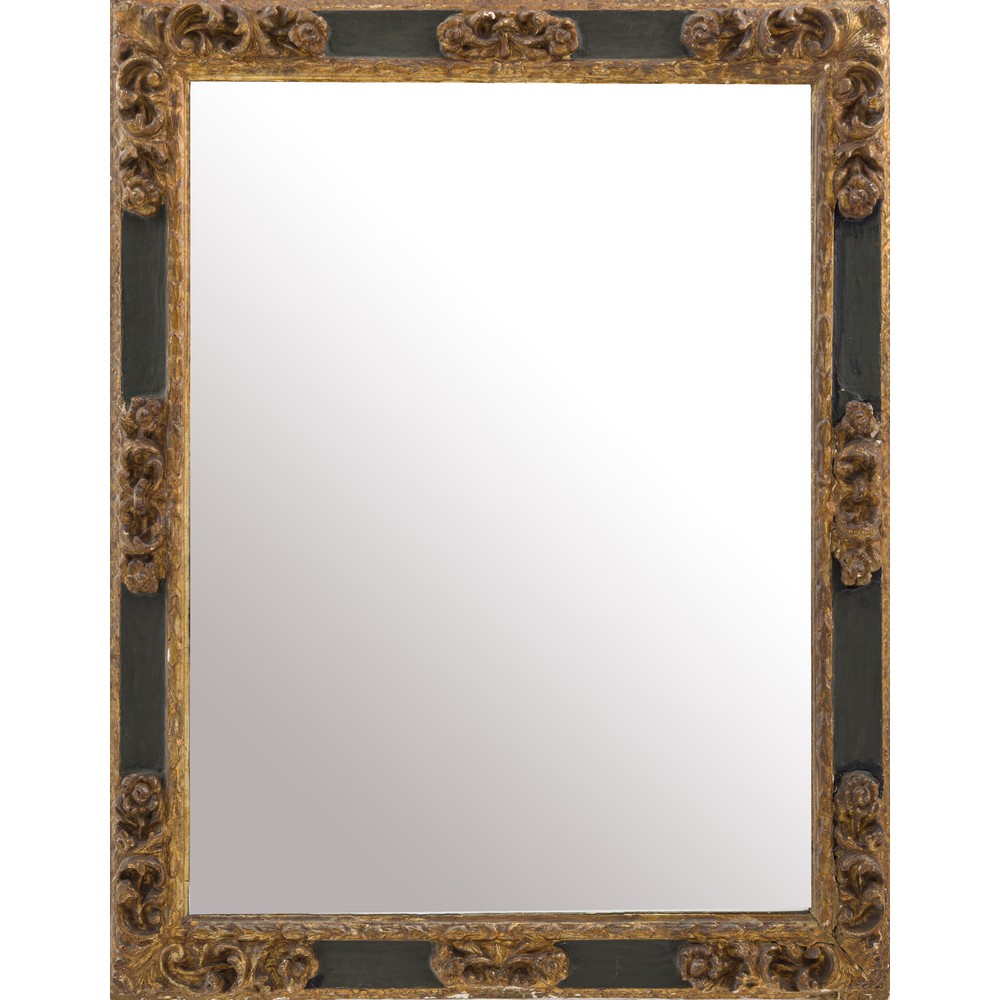 Cornice di epoca Luigi XIV con specchio in legno intagliato, dorato e laccato
