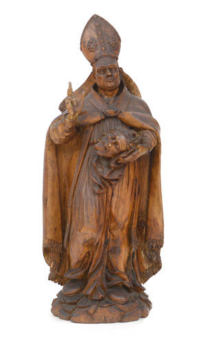 SCULTORE DEL XVIII SECOLO Santo vescovo con testa del Cristo Legno, alt. cm...