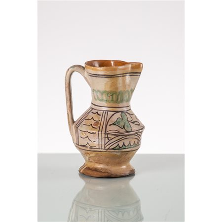 Brocca in maiolica decorata e dipinta nei toni del verde ramina e marrone manganese (restauri)