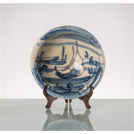 Ciotola in maiolica policroma nei toni del blu (usure del tempo)
