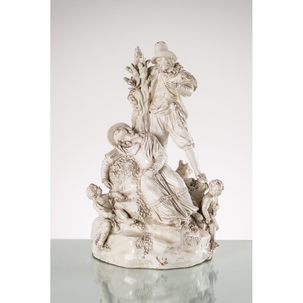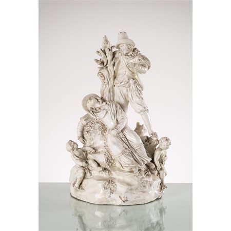Gruppo scultoreo con personaggi in terraglia bianca (piccole mancanze e restauri).