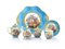 SERVIZIO DA TE' SOLITAIRE IN PORCELLANA CON DECORO POLICROMO, XIX SECOLO, composto da teiera, lattiera, zuccheriera con coperchio, una tazza con piatto e vassoio polilobato; decori con cesti di fiori entro riserve in oro su fondo azzurro.