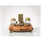 Calamaio di epoca Impero in cristallo e bronzo dorato a mercurio con base in legno poggiante su piedi ferini.