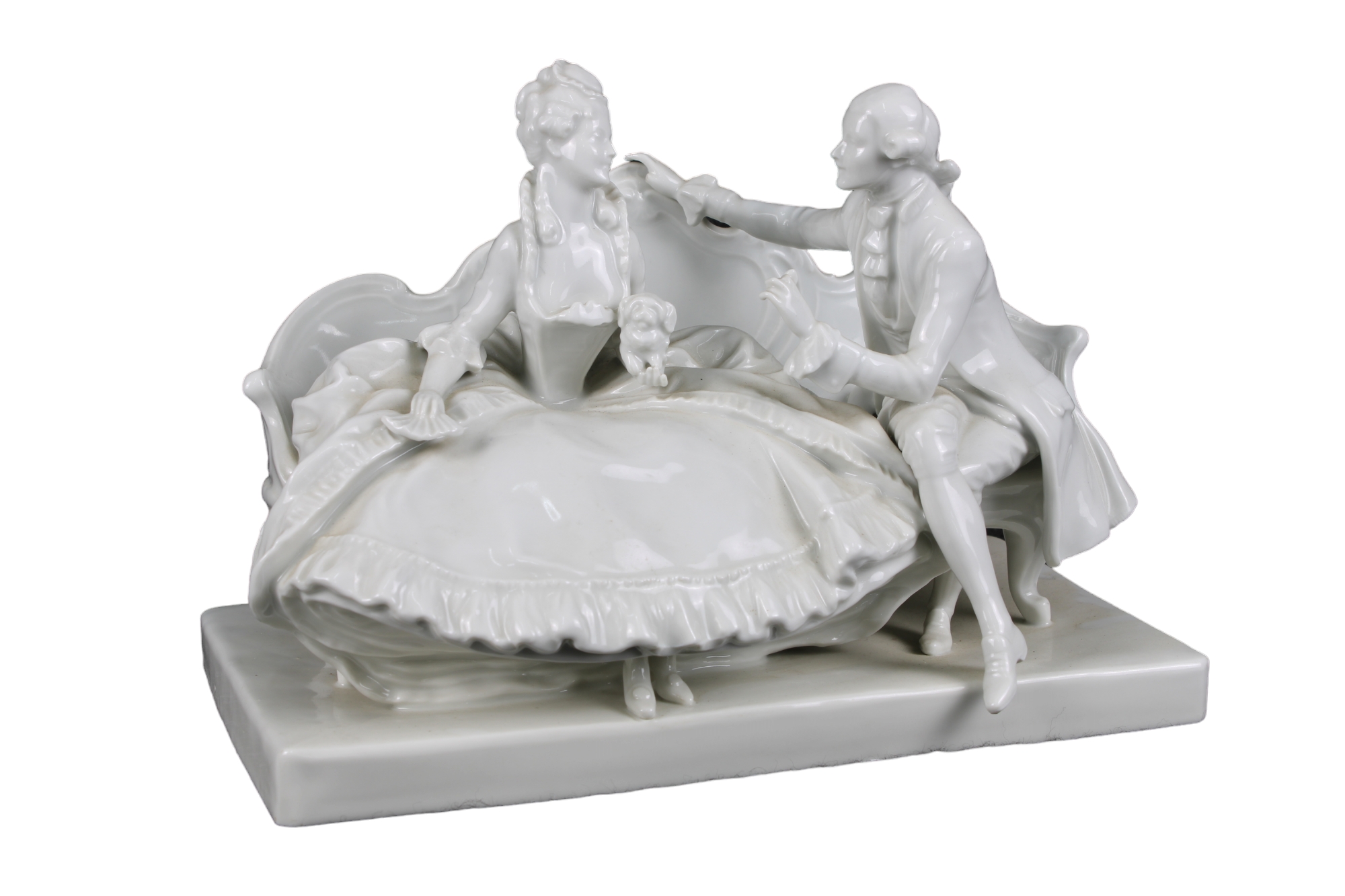 SCULTURA in porcellana raffigurante scena galante Inghilterra XX secolo h cm 21,5 x 28 x 16,5