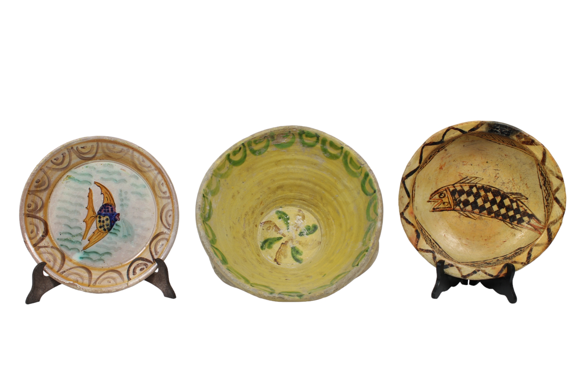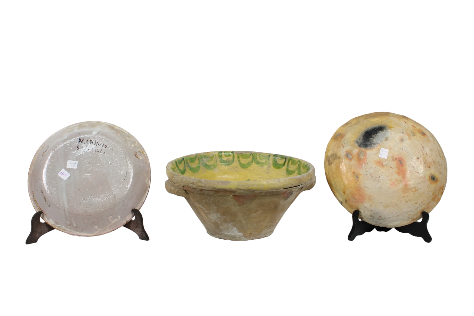 LOTTO DI 3 OGGETTI in maiolica di cui un piatto, un cavetto e un lemmo Sicilia XIX/XX secolo misure varie