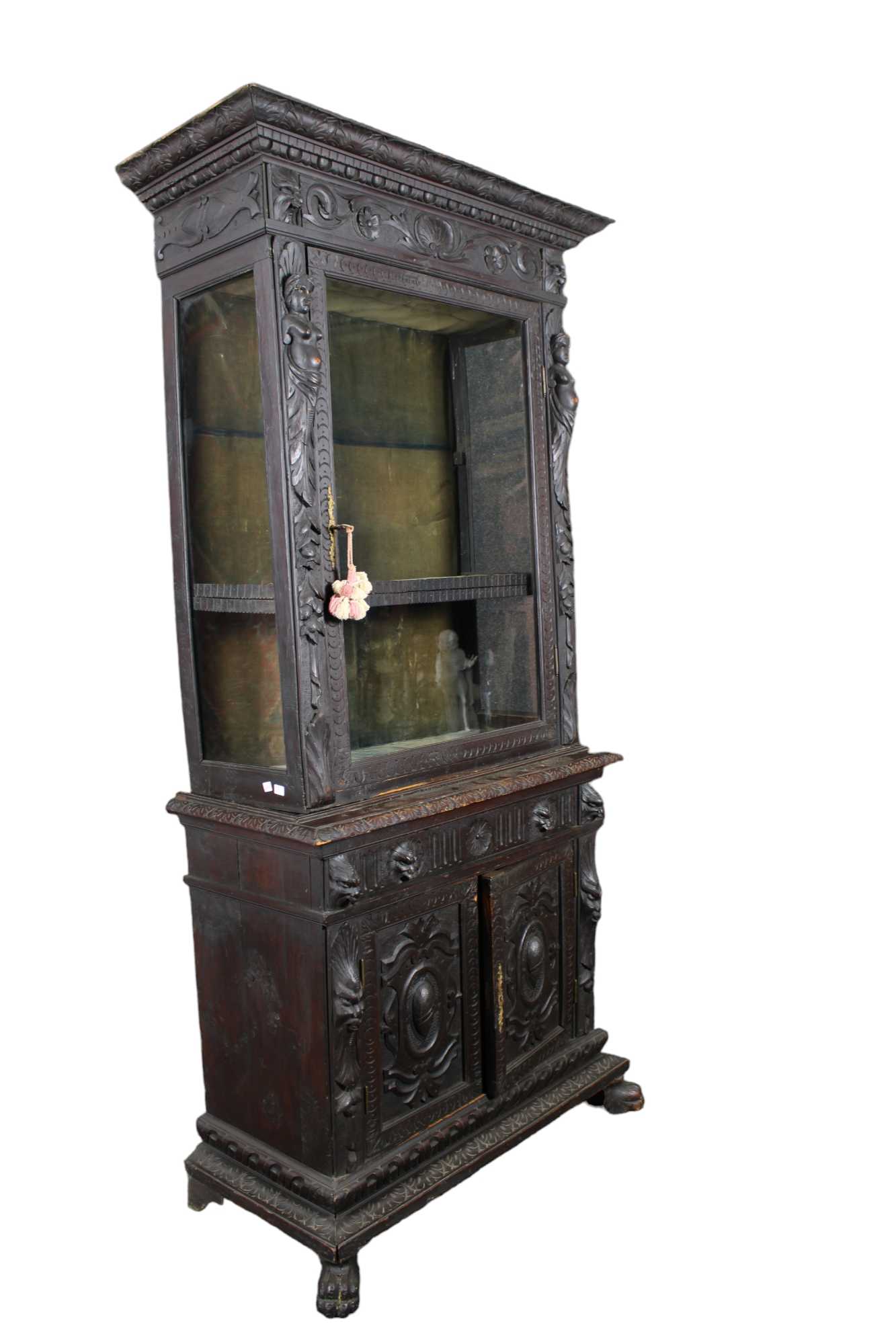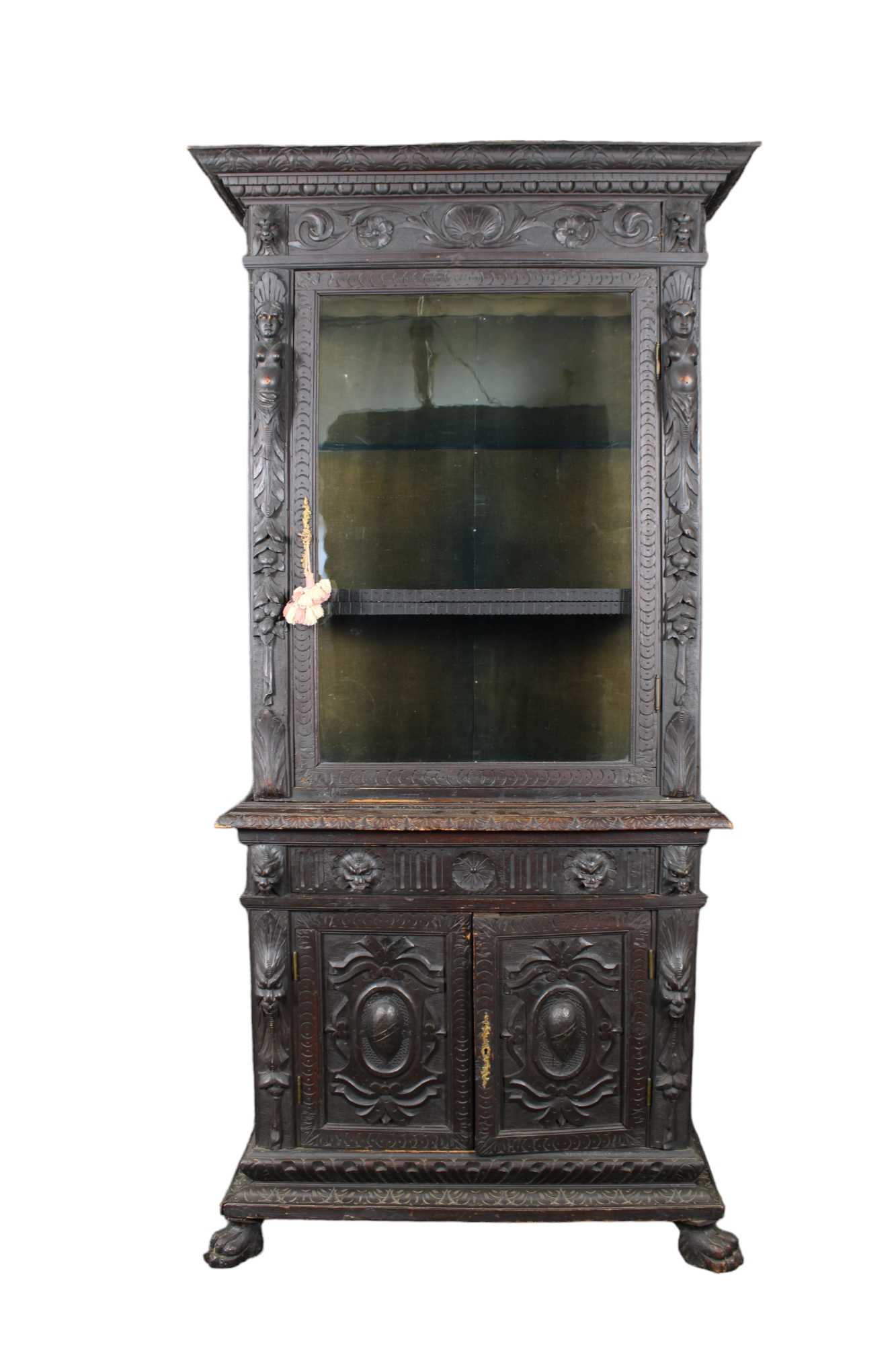 CREDENZA DOPPIO CORPO in noce stile rinascimento Italia fine 800 h cm 214 x 100 x 50