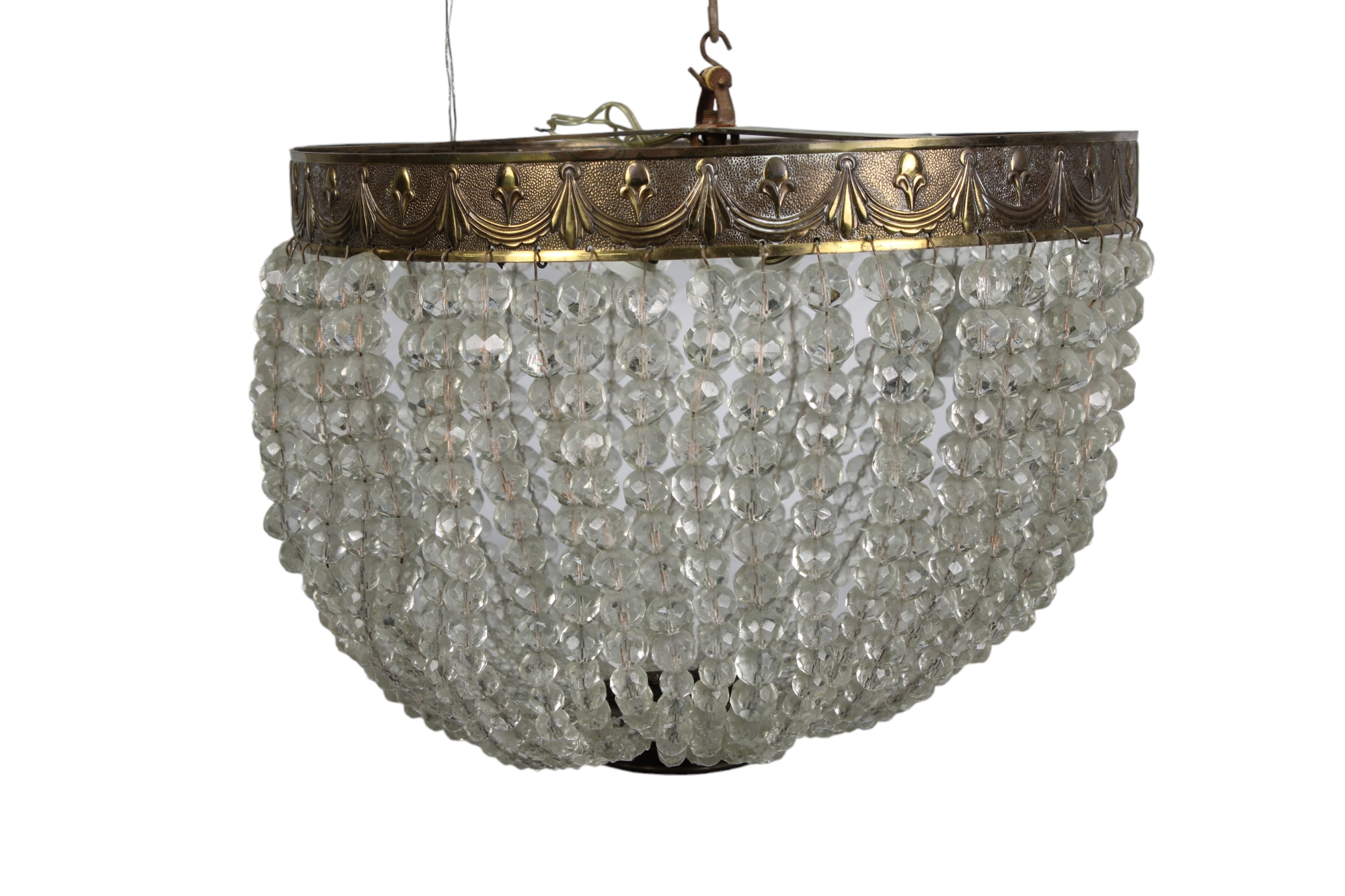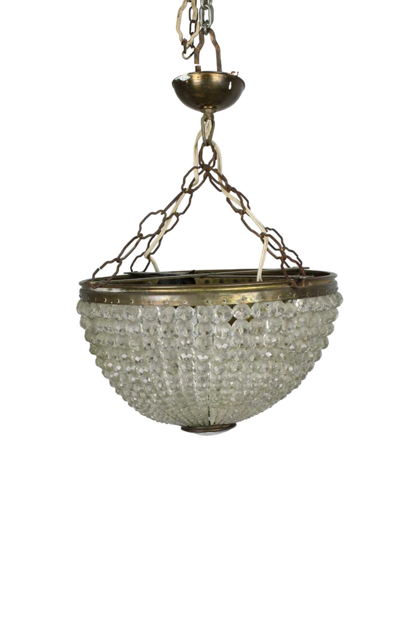 LOTTO DI 2 PLAFONIERE in fusione di ottone con pendenti in vetro Sicilia primi 900 h cm 25 x 36 / h cm 38 x 32