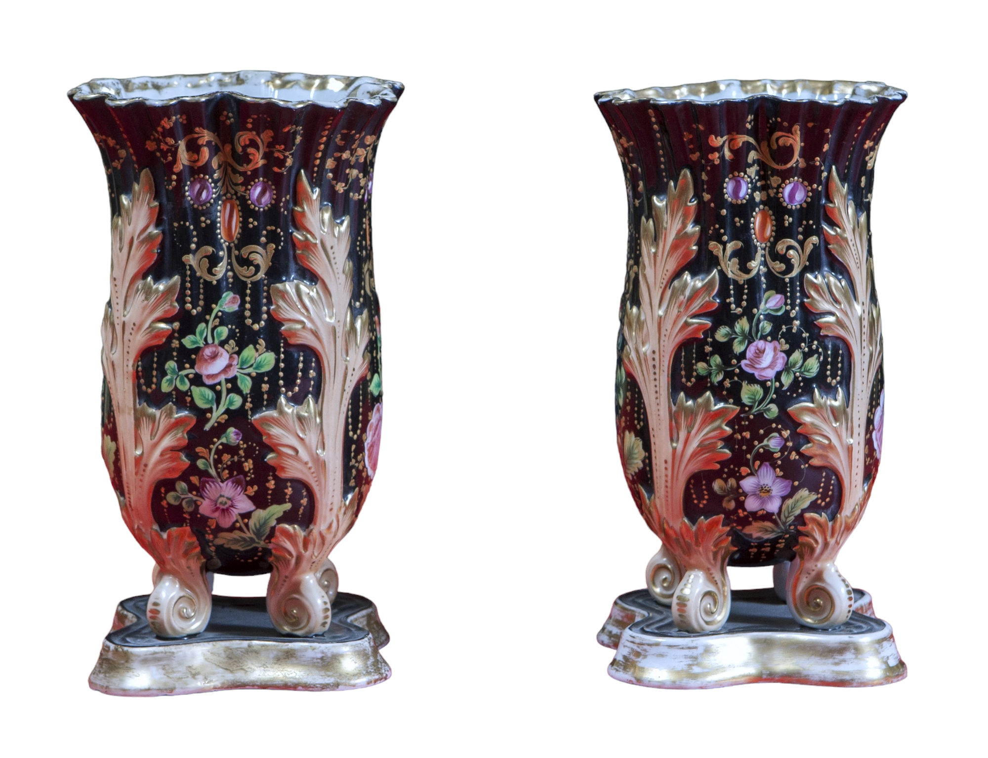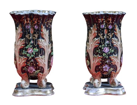 COPPIA VASI LUIGI FILIPPO in porcellana, decorati a motivi floreali XIX secolo h cm 24 x 13