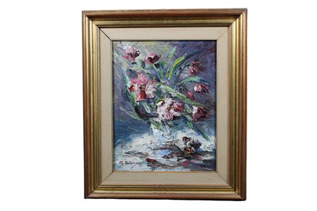DIPINTO A TECNICA MISTA raffigurante natura morta firmato in basso a s/x St. Tolomeo 75 Italia XX secolo h cm 50 x 40 / cornice h cm 72 x 62