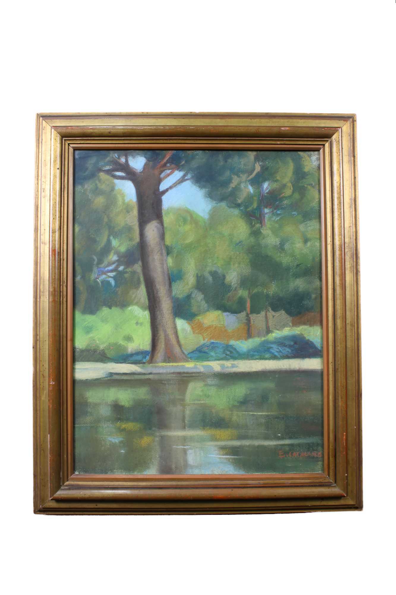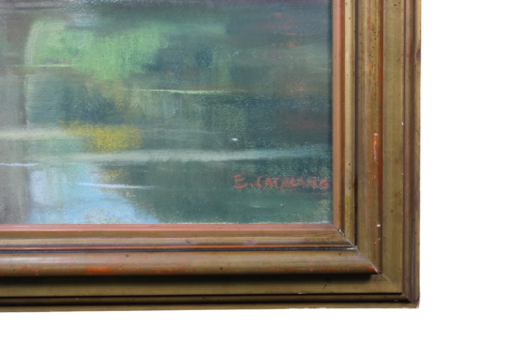 TECNICA MISTA raffigurante paesaggio con alberi firmato E. Catalano Italia XIX secolo h cm 50 x 38