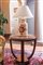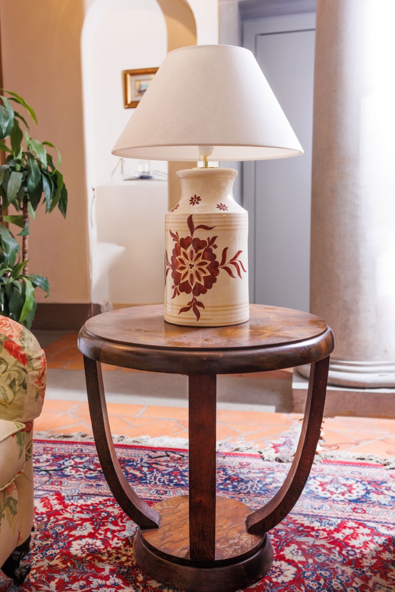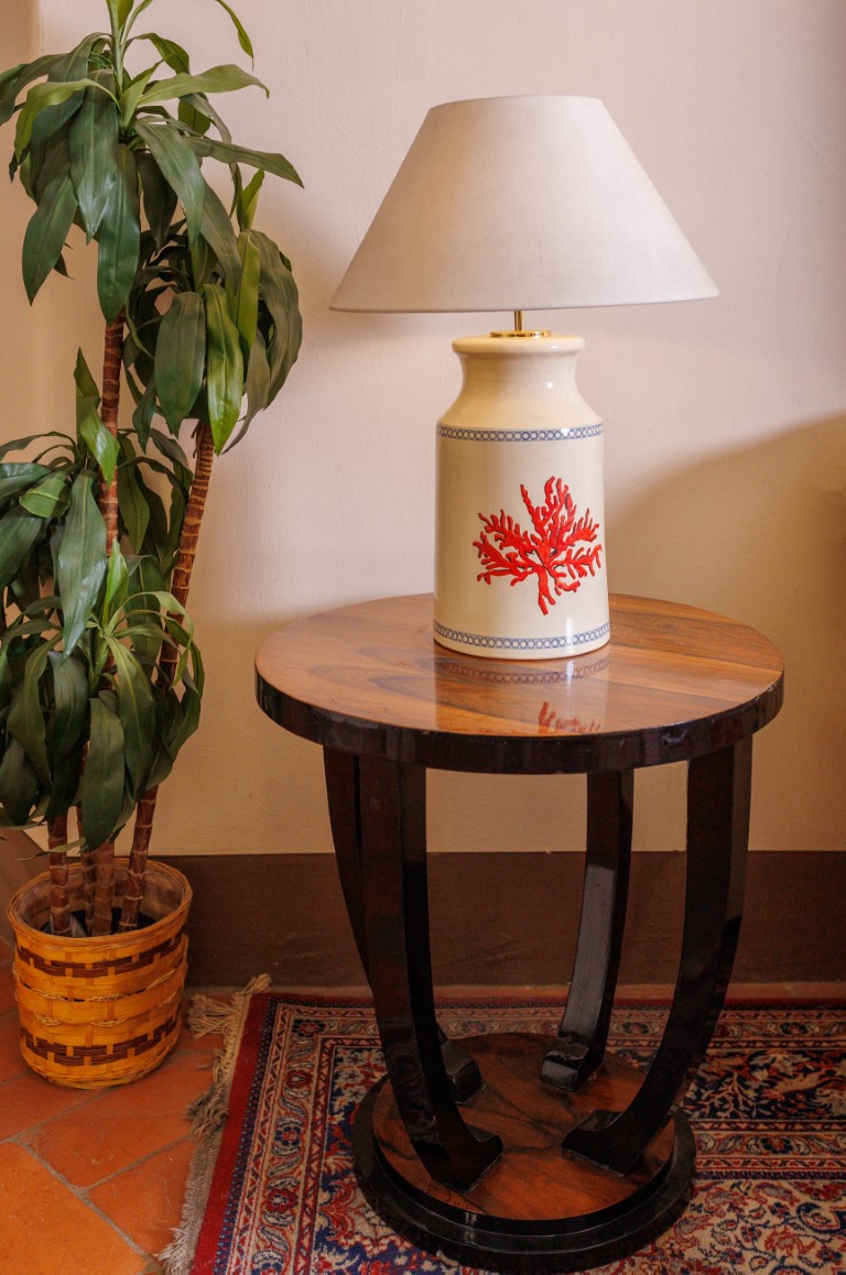 decorati con fiori e ramo di corallo, paralume in cotone bianco