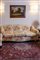 composto da divano a tre posti e due poltrone, ricoperti in cotone a fiori, con gambe mosse ebanizzate