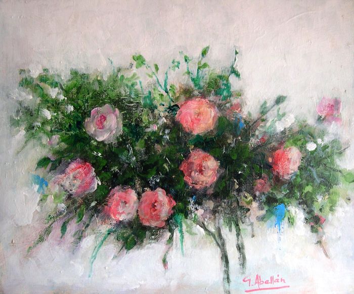 JOSE ABELLAN (1961) Olio su Tela CM 65X55 Titolo -Rose Rosse- Anno 2006 Firma...
