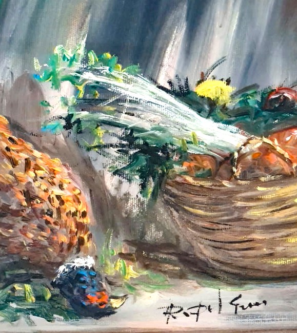 RENZO DEL GREGO (1969) Olio su Tela Titolo -La Morte del Fagiano- CM 50X35 Firma a Mano al Fronte Autentica al Retro Cornice Presente