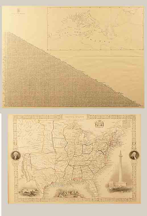 Lotto composto da una carta geografica degli Stati Uniti d'America e una del...