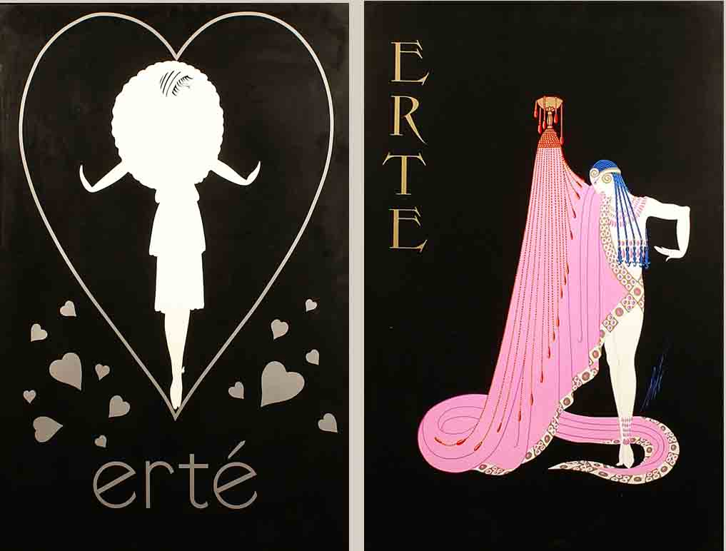 Lotto composto da due affiches Ertè entro cornice, cm. 80x53.