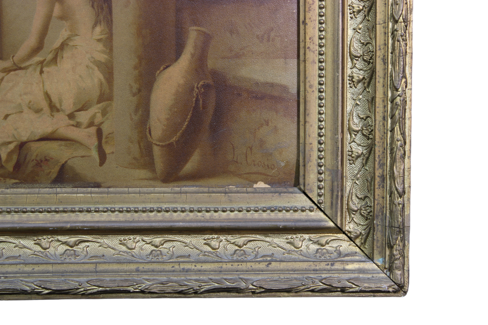 STAMPA OLEOGRAFICA raffigurante scena di vita orientale dentro cornice in legno e pastiglia dorata, Luigi Crosio h cm 51 x 76 / cornice h cm 68 x 95